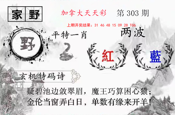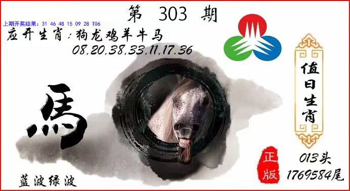 | 301期 | 马牛兔龙鸡蛇猴 | 20狗 |