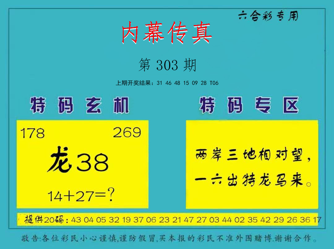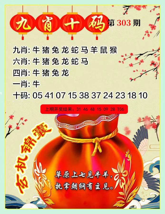 | 303期 | 蛇马牛龙羊鼠猪 | 21鸡 |