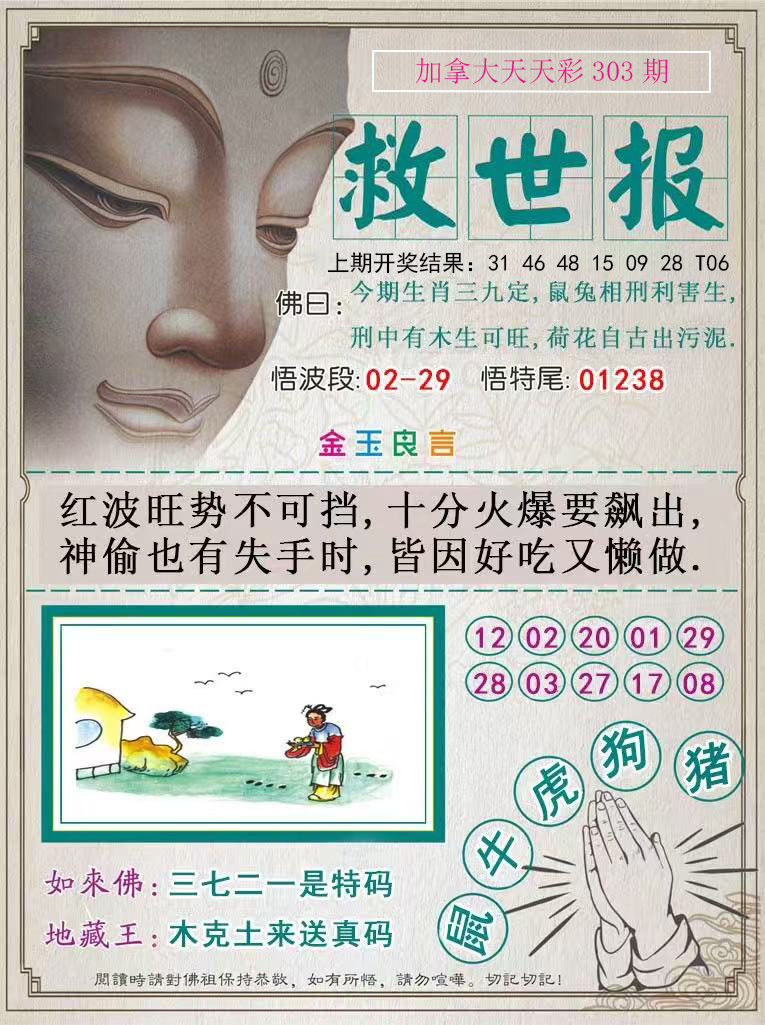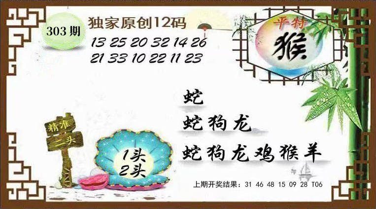 | 302期 | 羊牛鸡虎猴狗猪 | 06鼠 |