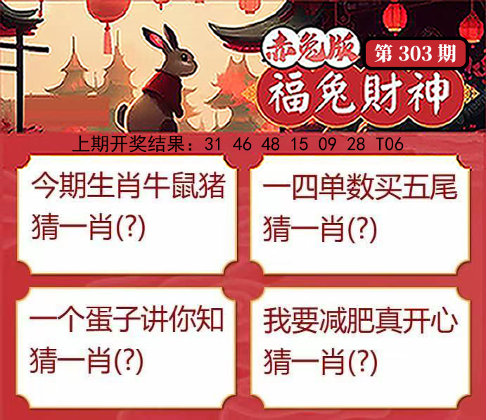| 300期 | 鸡羊猪鼠兔龙猴 | 45鸡 |